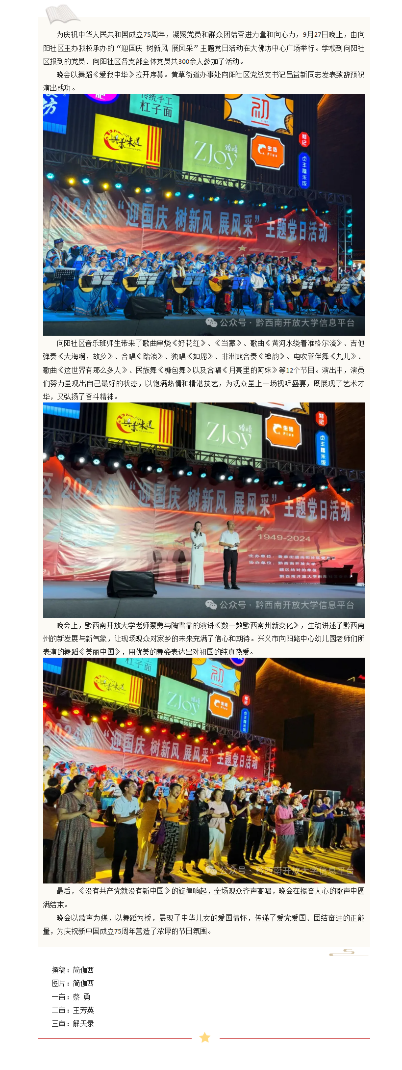 黔西南开放大学携手向阳社区开展“迎国庆 树新风 展风采”主题党日活动