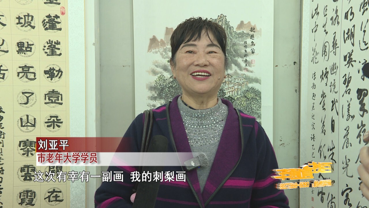 市老年大学学员 刘亚平 这次有幸有一幅画,我的刺梨画,还有一幅摄影(作品)都能够参展,这是我感到非常荣幸的事情,老年大学是我们退休者乐园。在这个乐园里我们老有所学、老有所为,能够不断的进步。
