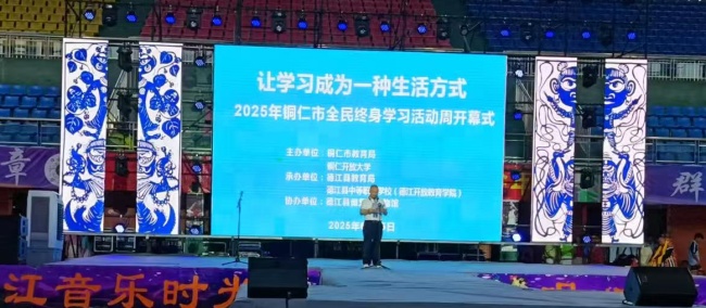 党的二十大报告指出“推进教育数字化,建设全民终身学习的学习型社会、学习型大国”。为大力宣传全民终身学习理念,积极动员群众广泛参与,助力构建 “人人皆学、处处能学、时时可学” 的学习型社会,6 月 25 日,2025 年铜仁市全民终身学习活动周开幕式在德江县体育馆盛大召开。本次活动由铜仁市教育局、铜仁开放大学联合主办,旨在深入贯彻落实党的二十大和二十届三中全会精神。各区县教育局、开放教育学院、中职校有关人员参会。