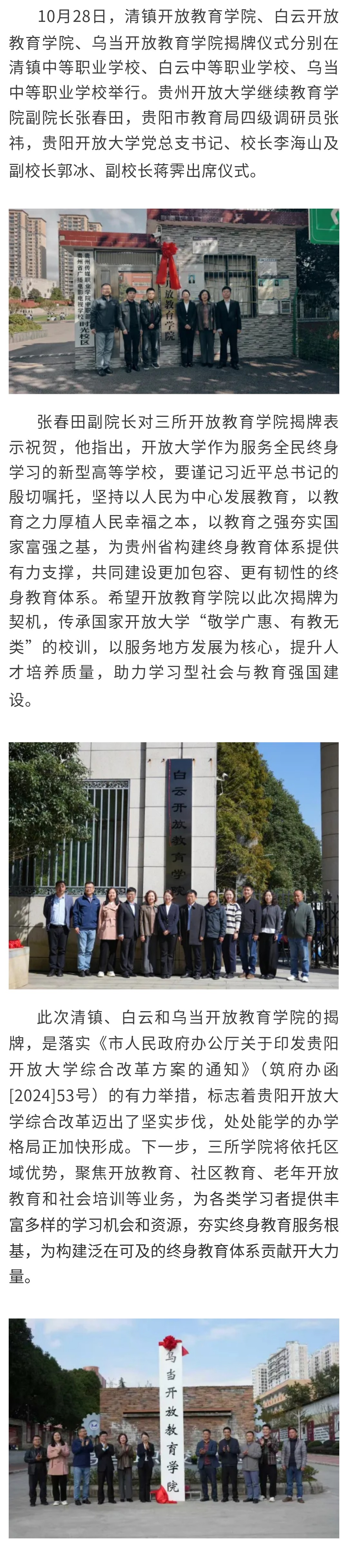 三所开放教育学院同日揭牌 贵阳开放教育体系建设再提速