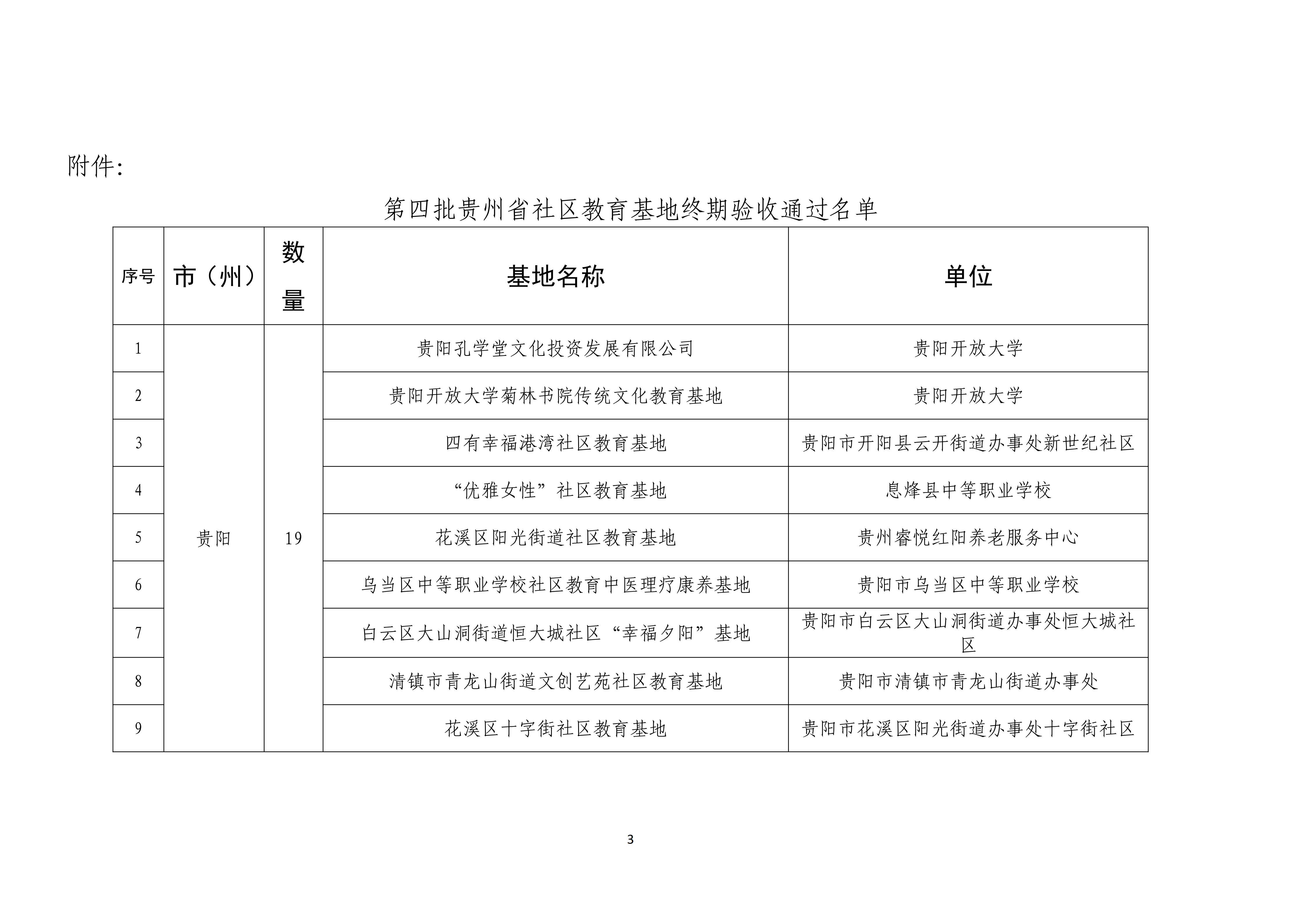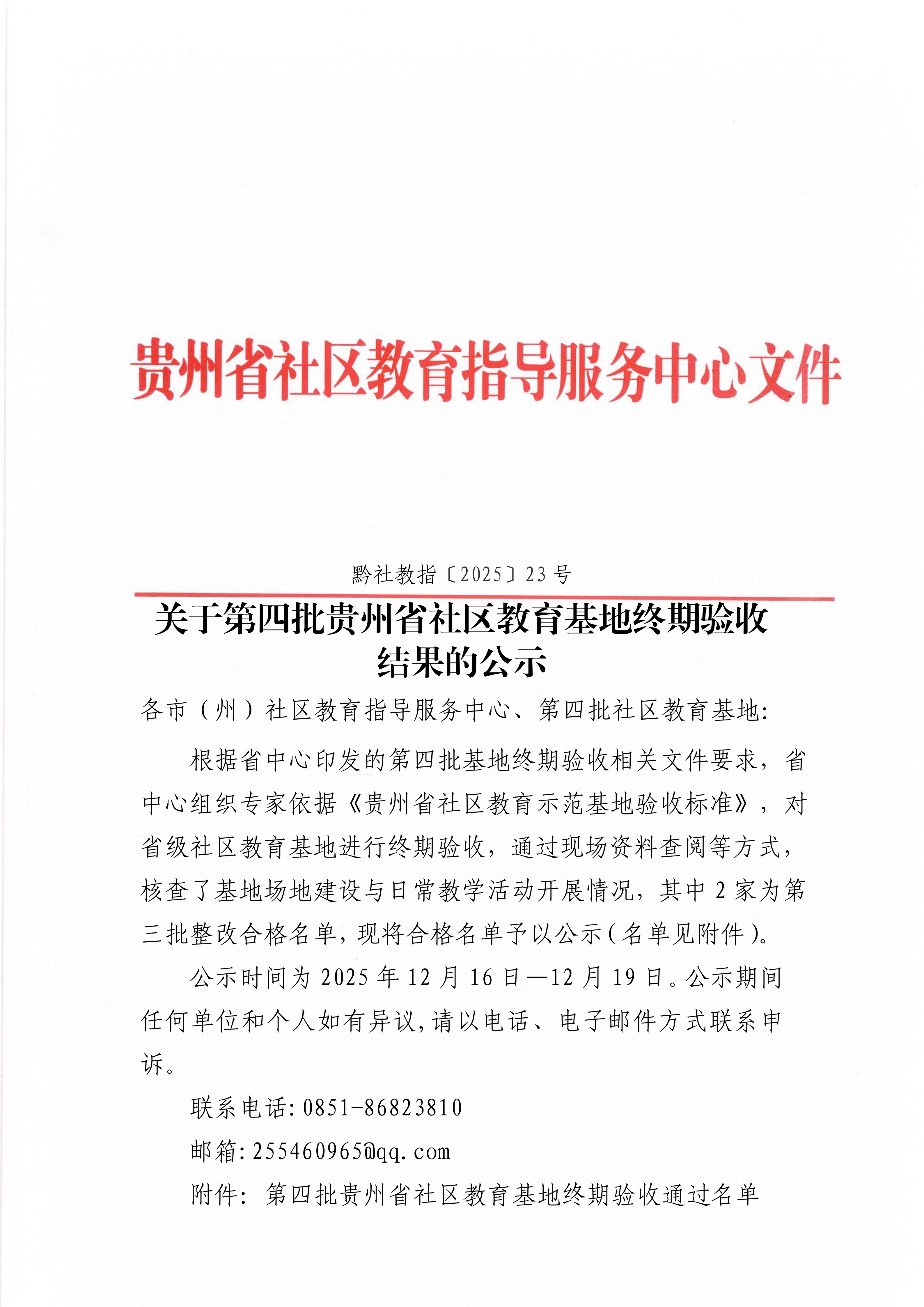 关于第四批贵州省社区教育基地终期验收结果的公示