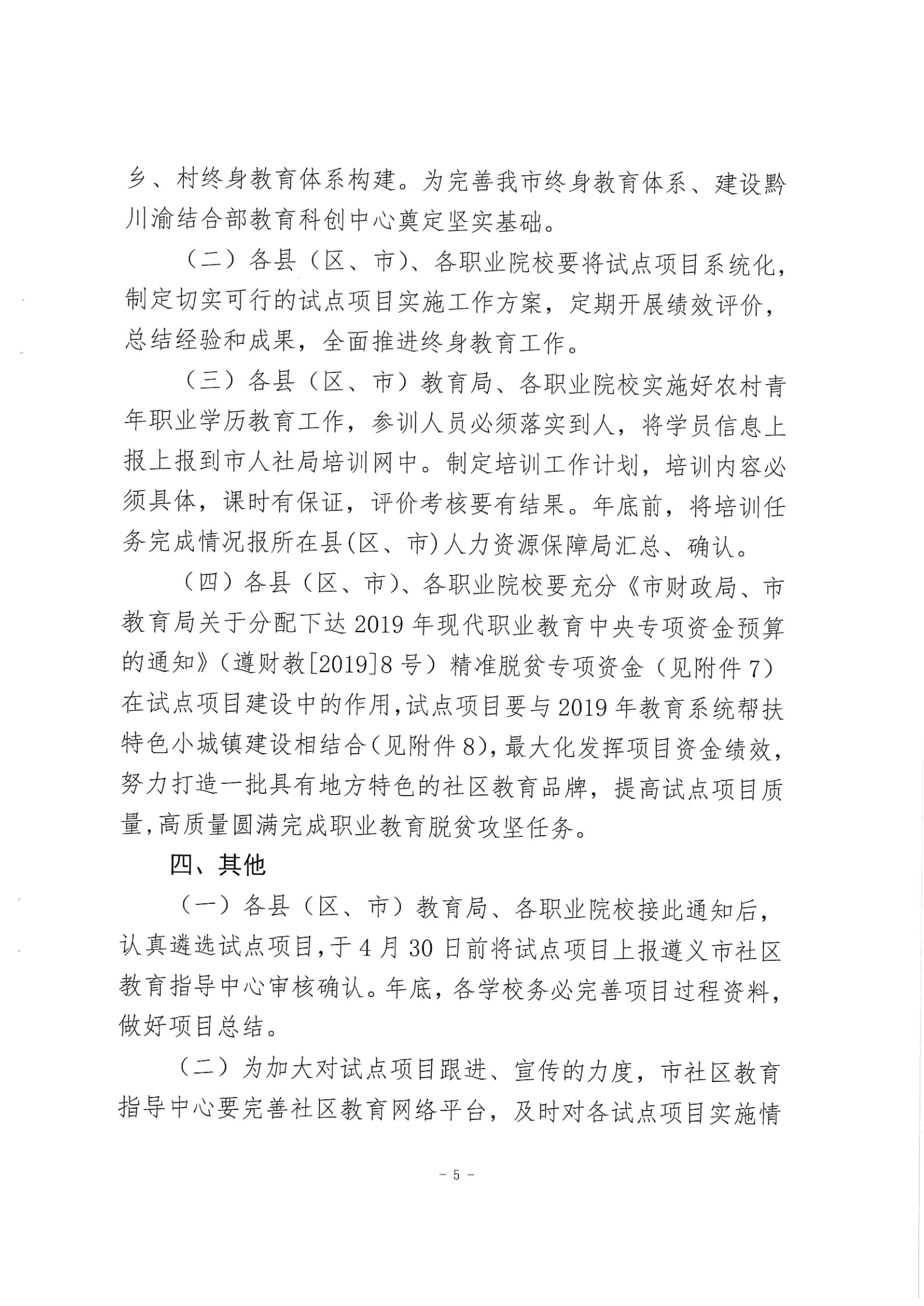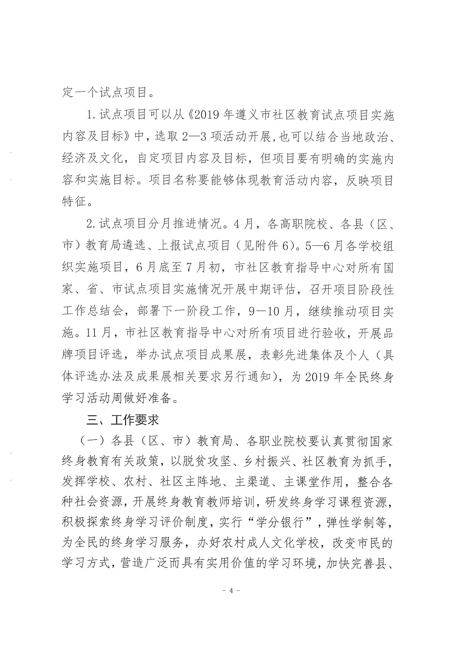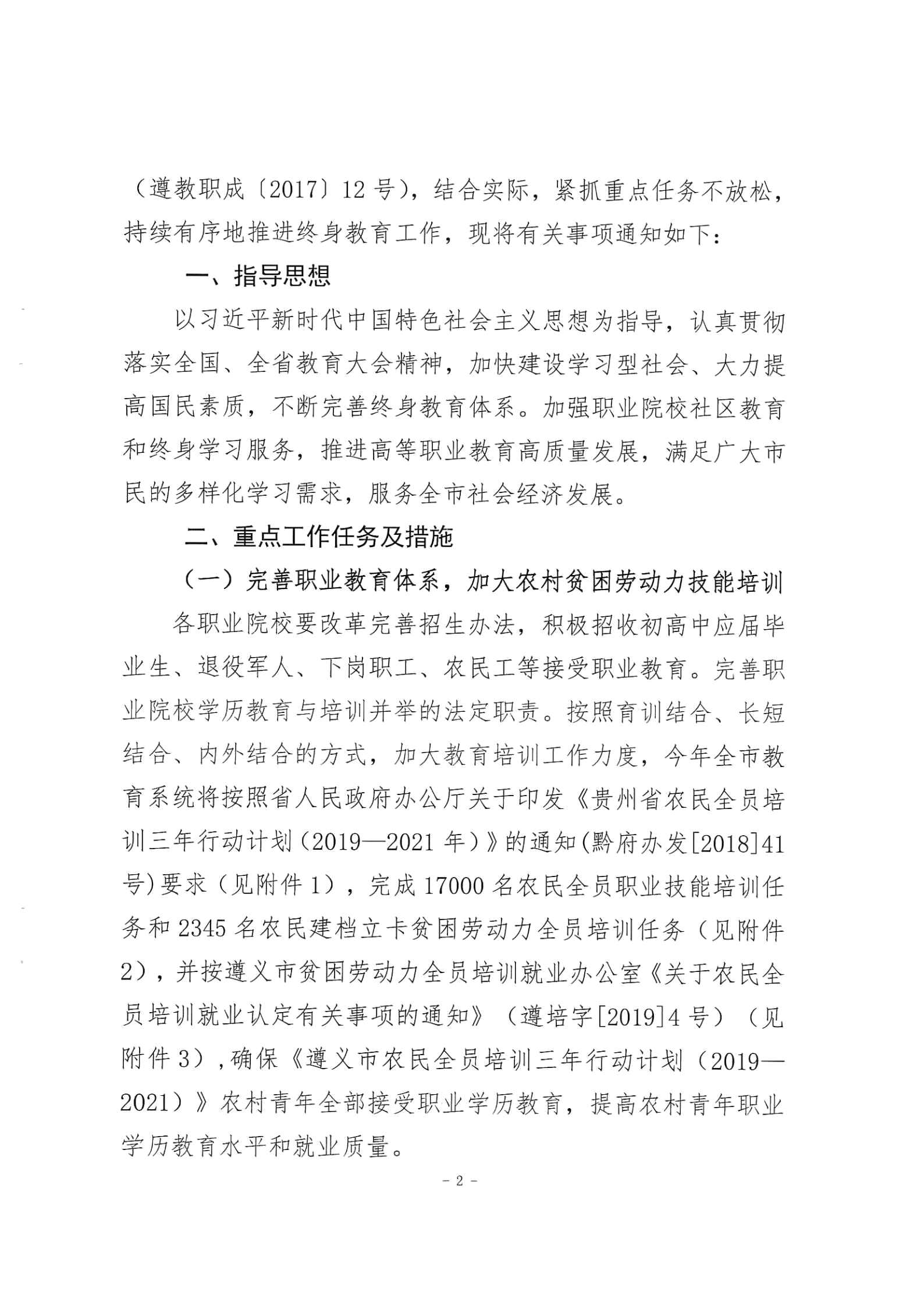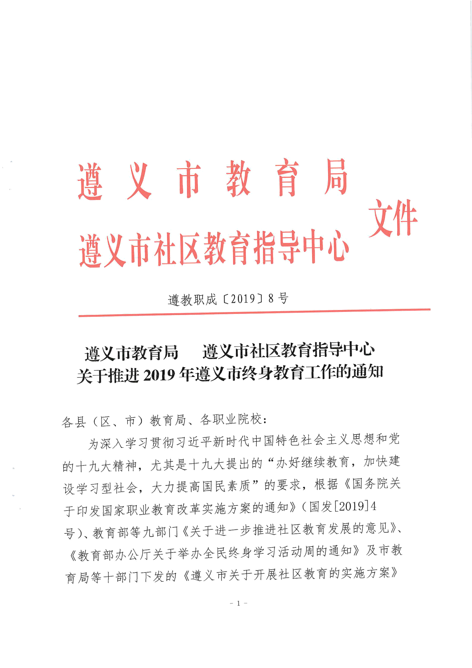 遵义市教育局 遵义市社区教育指导中心关于推进2019年遵义市终身教育工作的通知