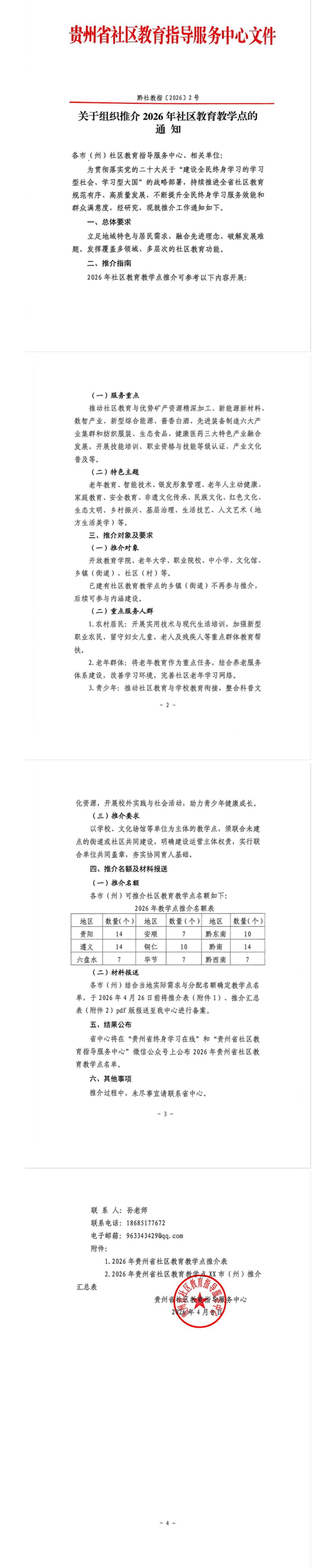 关于组织推介2026年社区教育教学点的通知