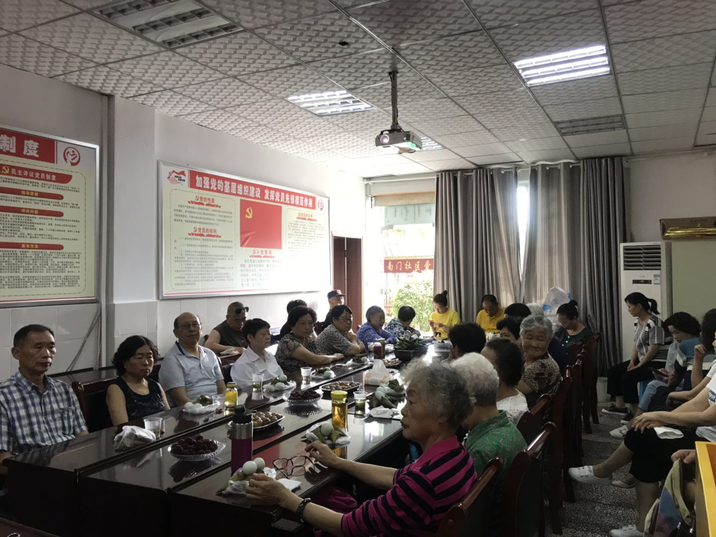 南门社区主任苟辉茂主任对到会的人员致欢迎词,祝大家端午安康!随后,观看了端午节的风俗视频,让大家更加深刻的了解了中国传统节日和意义。