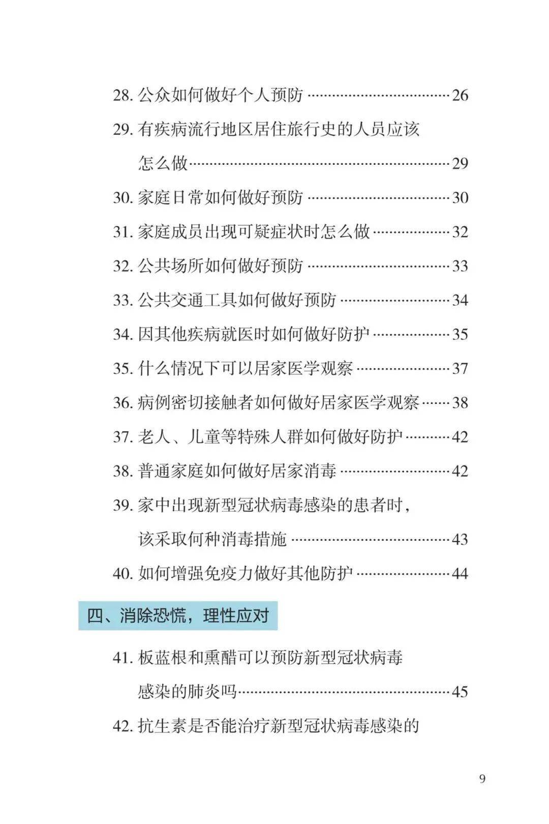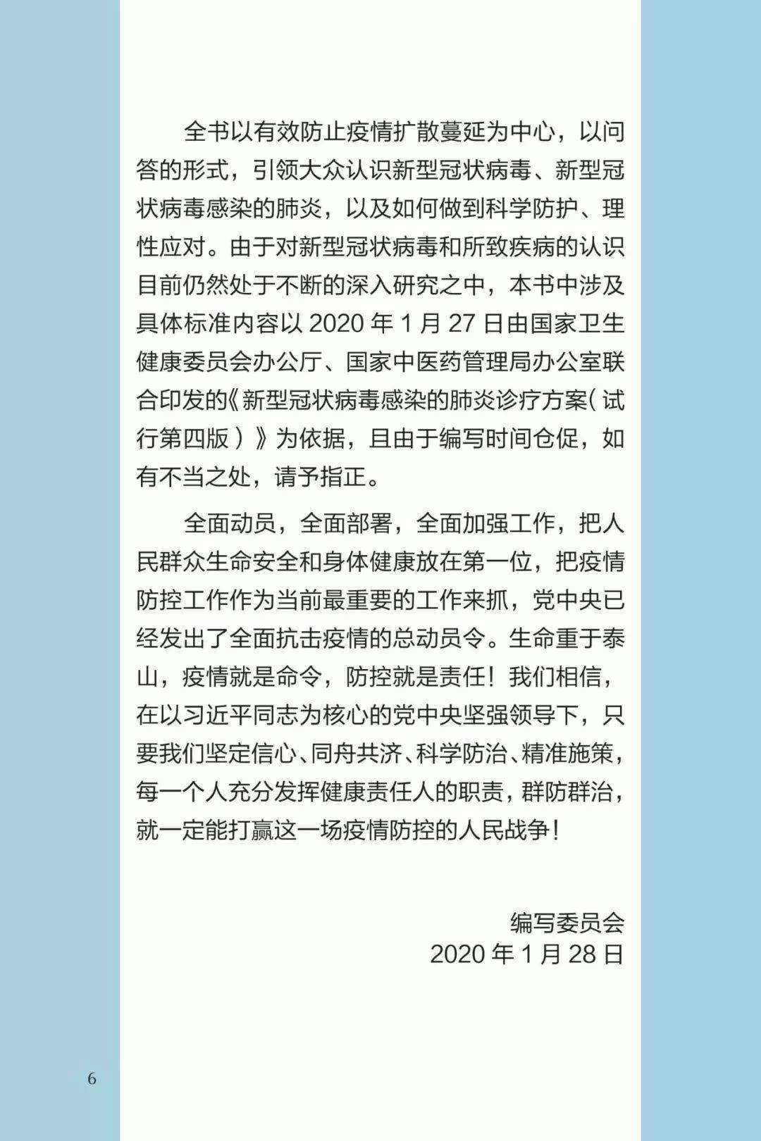 该书聚焦公众个人与家庭防护、居家医学观察、理性就医、心理疏导等防治细节,通过问答形式解读有关疑惑,引导公众正确认识,积极做到防治结合、科学防护、消除恐慌、理性应对。