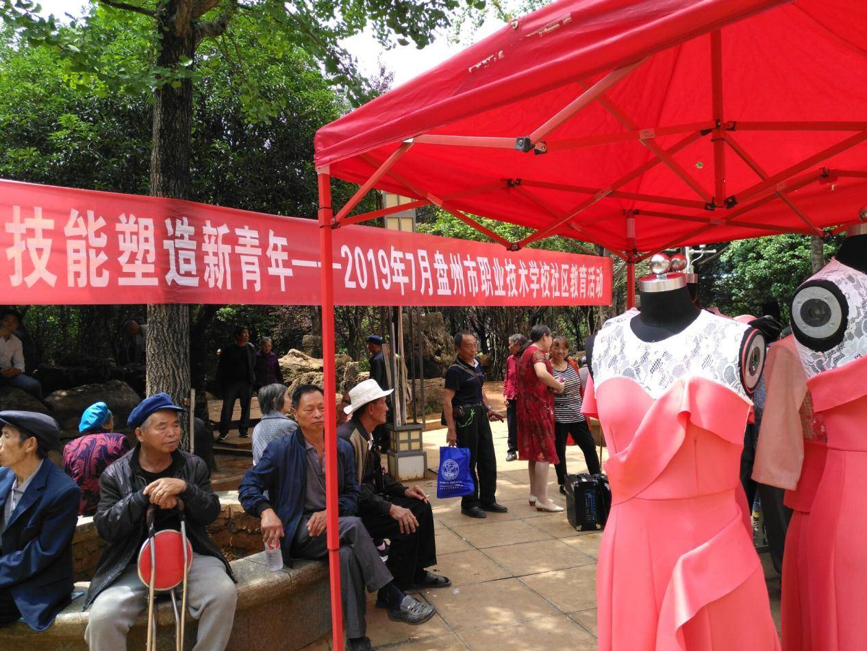 2019年7月15日盘州市职业技术学校在胜景街道社区胜境广场进行了“技能塑造新青年”为主题的“世界青年技能日”宣传活动。