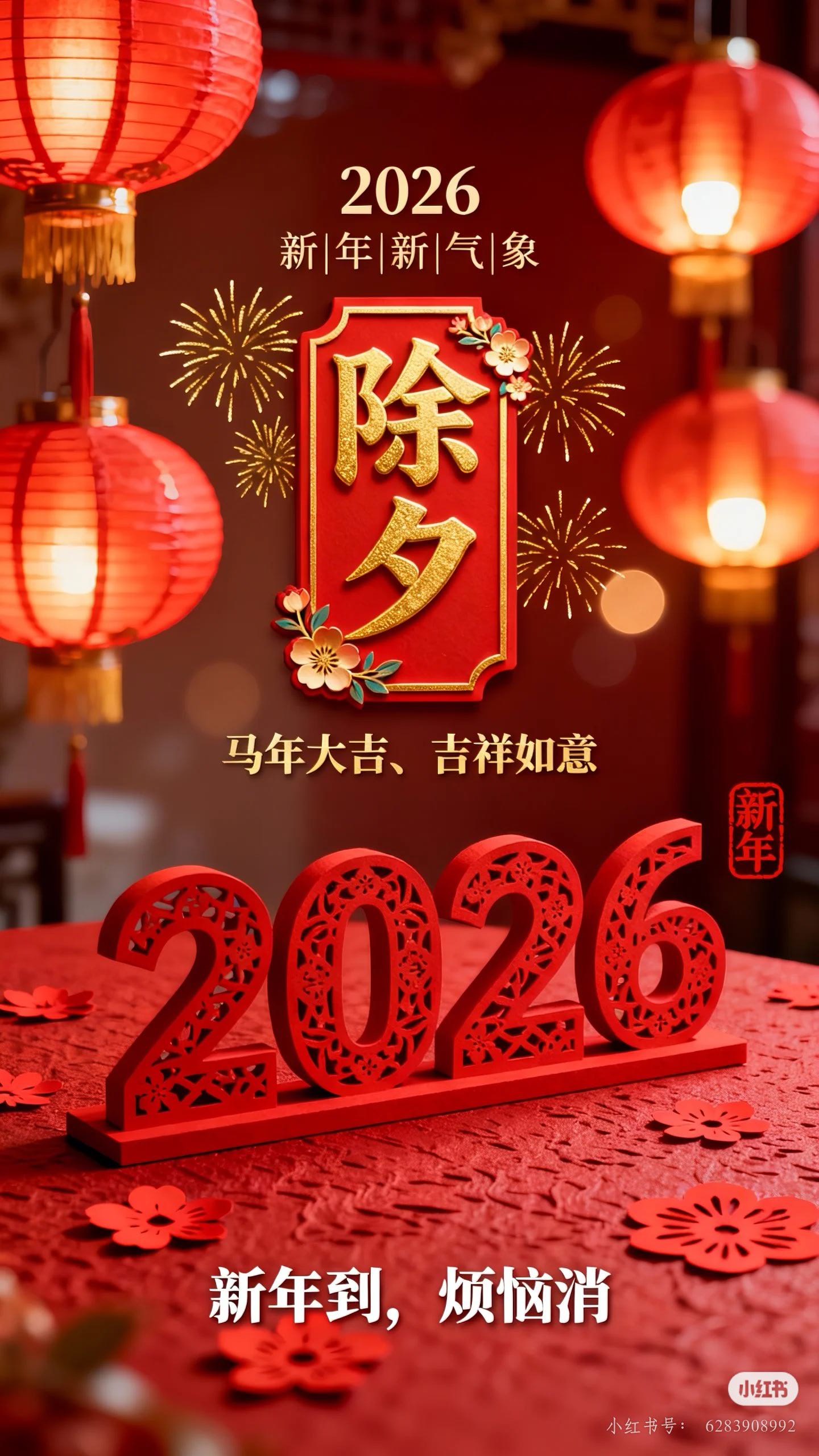除夕辞旧岁,金马迎新春!祝你在2026年:策马扬鞭奔前程,马到成功事事顺。身体如龙马精神,事业似万马奔腾。除夕快乐,阖家安康!