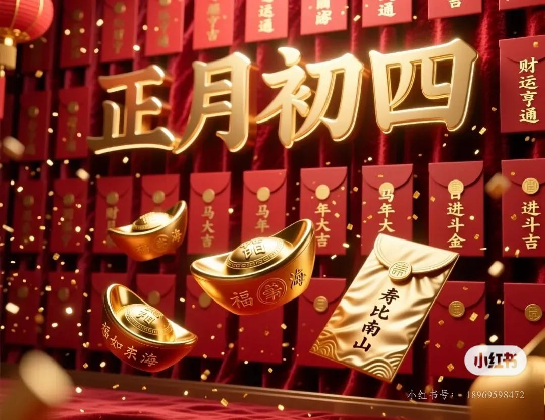[emoji][emoji]|迎|三餐四季开心过,|灶|五福临门幸福多,|神|[emoji]年初四,健康长乐,初四快乐![emoji][emoji][emoji]
